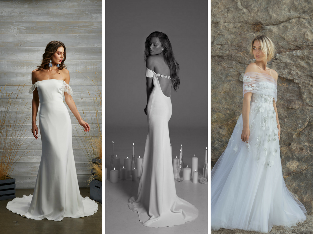 wedding dresses, off the shoulder wedding dresses, wedding dress trends
