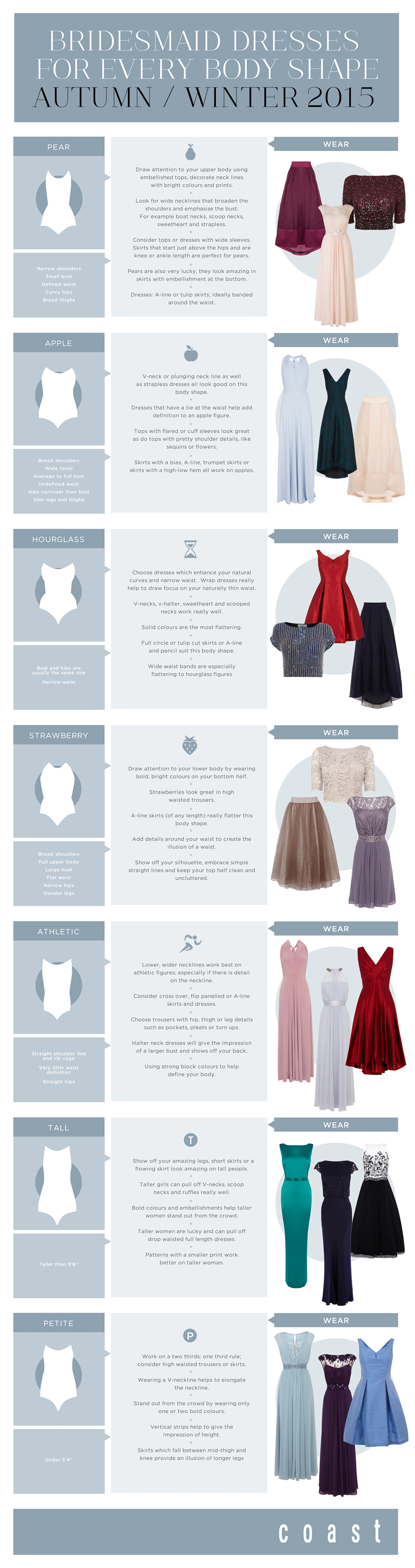 A great place to start is to understand exactly what style of dress suits each body shape, and luckily our friends at Coast are here to help us do just that. What's more, their occasion range provides the perfect option for your girls who'd like to wear their wedding outfits again! Enjoy...