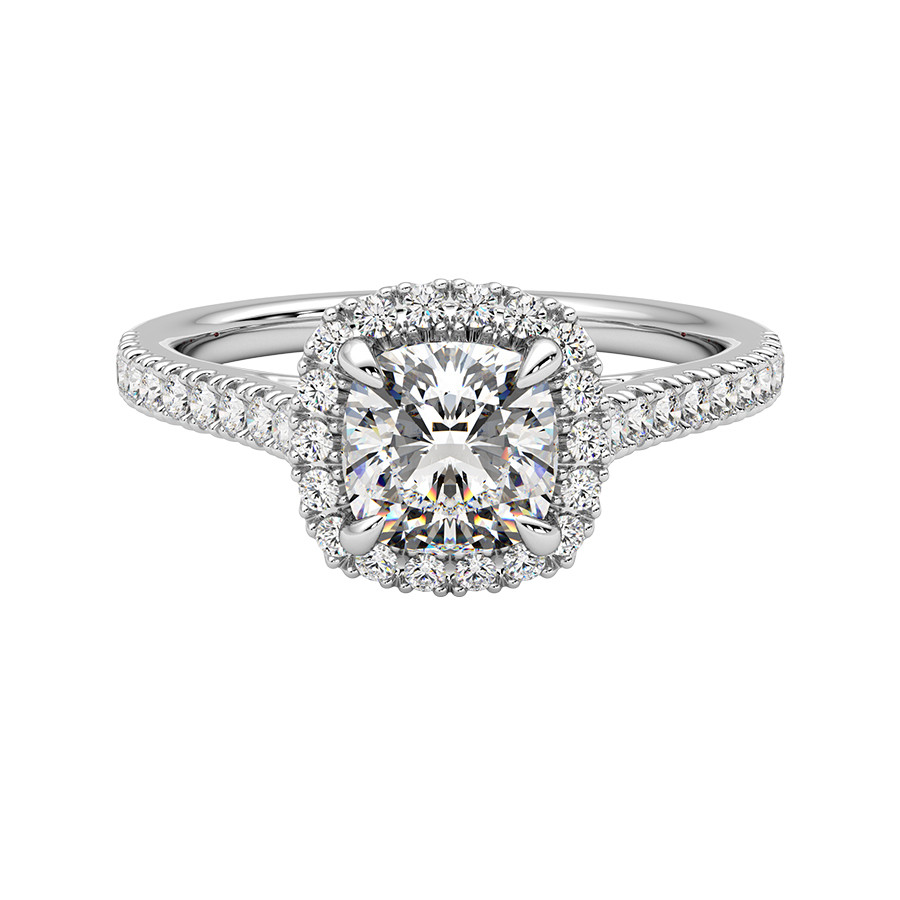 Additionally, Millie’s ring aligns with the rising popularity of mixing classic and modern elements. The cushion halo surrounding the centre stone gives a nod to vintage aesthetics, while the pavé band keeps the look fresh out of the Hellfire Club.